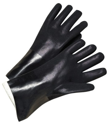 Double-dipped PVC exterior is chemically resistant to oil, grease and acids Soft jersey lining offers cushioning and moderate insulation
